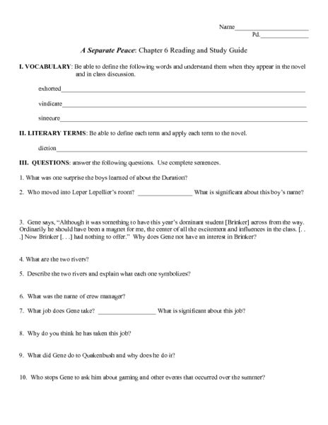 A Separate Peace Chapter 6. 5 questions | by swifty1 | updated: Web what does gene mean when he says peace had deserted devon at the beginning of chapter 6?