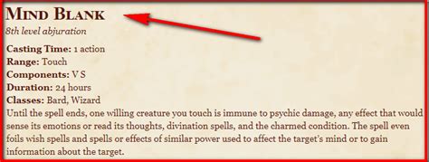 5E Mind Blank. 24 hours until the spell ends,. One willing creature you touch.