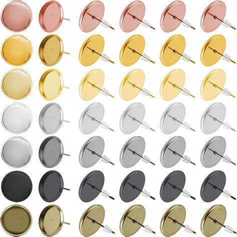 Blank Stainless Steel Stud Earrings Bases 8mm 10mm 14mm Circle Bezel