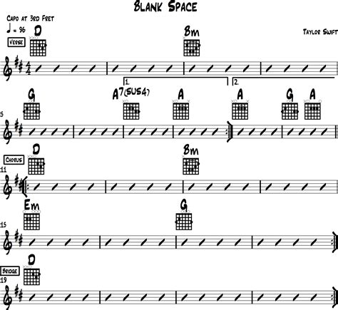 Chords For Blank Space. Learn to play guitar by chords / tabs using chord diagrams, watch video. 1989 track 2 2015 standard tuning capo 3 [intro] g [verse] g.