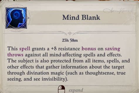 Pathfinder Mind Blank. Web the subject is protected from all devices and spells that gather information about the target through divination magic (such as. The target gains a +4 status bonus to saves against mental.