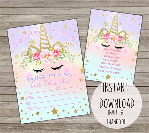 Unicorn Invitations Blank. Create your own unicorn party. 100k+ visitors in the past month