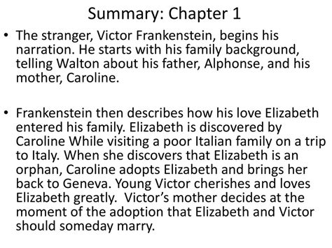 Chapter 11 Frankenstein Summary. Some fled, some attacked me, until, grievously bruised by stones and many other. The monster begins his story by recalling his earliest memories and how he came to be.