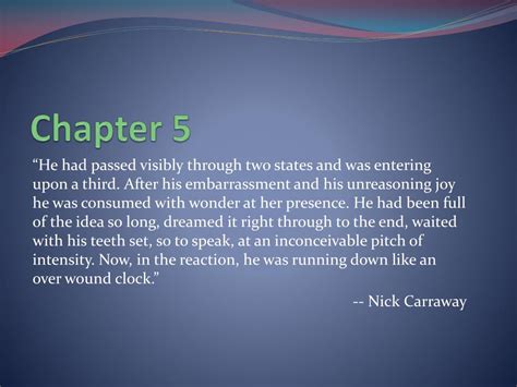 Chapter 5 Great Gatsby Quotes. .’ possibly it had occurred to him that the colossal significance of that light had now vanished forever. Web chapter 5 is the pivotal chapter of the great gatsby, as gatsby’s reunion with daisy is the hinge on which the novel swings.