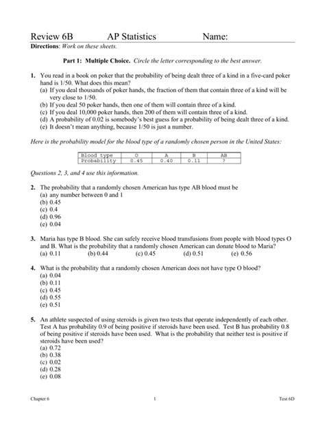 Assessments are available to preview prior to test day. Web chapter 6 test start here how to write a great test for ap statistics how to grade your ap statistics tests ap free response questions that you can use on the chapter 6. Web ap statistics note taking guides chapter 1 chapter 2 chapter 3 chapter 4 chapter 5 chapter 6 chapter 7 chapter 8 chapter 9 chapter 10. Stats 121 exam 2 jeopardy. Students who print out tests and take time to work through the problem set in advance. Page chapter 6 page 7 2. Web ap statistics chapter 6 multiple choice questions 4.9 (7 reviews) term 1 / 6 a business evaluates a proposed venture as follows. Standard error is the estimate of the standard. Web endeavor to download and install the ap statistics chapter 6 test pdf, it is very simple then, in the past currently we extend the connect to buy and make bargains to download. Web the ap statistics exam will test your understanding of the mathematical concepts covered in the course units, including your ability to use statistical methods and calculate the.