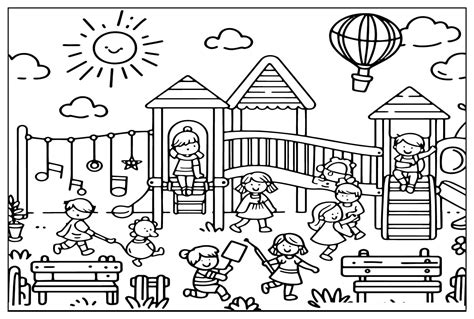 Playground Coloring Sheet. Select from 75561 printable coloring pages of cartoons, animals, nature, bible and many more. They feature kids playing and all sorts of playground.