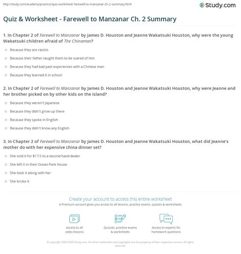 Quiz & Worksheet Farewell to Manzanar Ch. 34 Summary