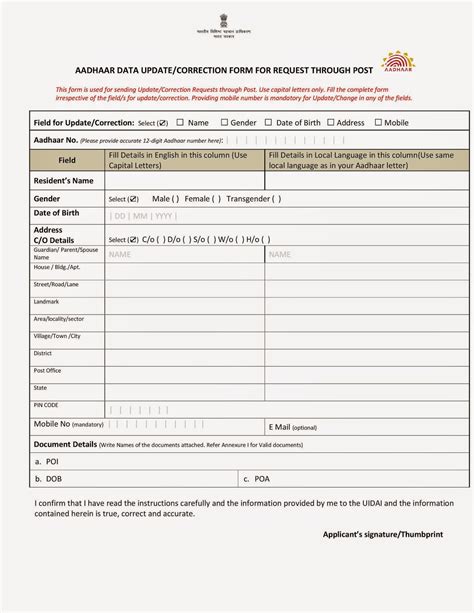 Aadhaar Update/Correction Form Aadhaar Card Blog