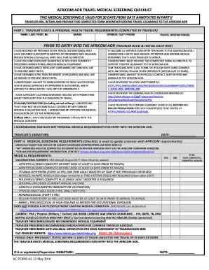Web traveler will retain and provide this completed form whenever seeking travel clearance to the africom aor part i:. Web ac form 42 is a medical screening checklist for travelers who seek travel clearance to the africa command.