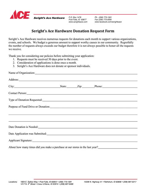 Ace Hardware Donation Request Form. Due to the high volume of donation requests, please make sure that your request is submitted. Web please send all donation, sponsorship or partnership requests via email to info@coloradohelpfulplace.com along with.