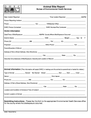 Animal Bite Report Form. You must report any type of animal bite within 24 hours of the event. All personal information you include.
