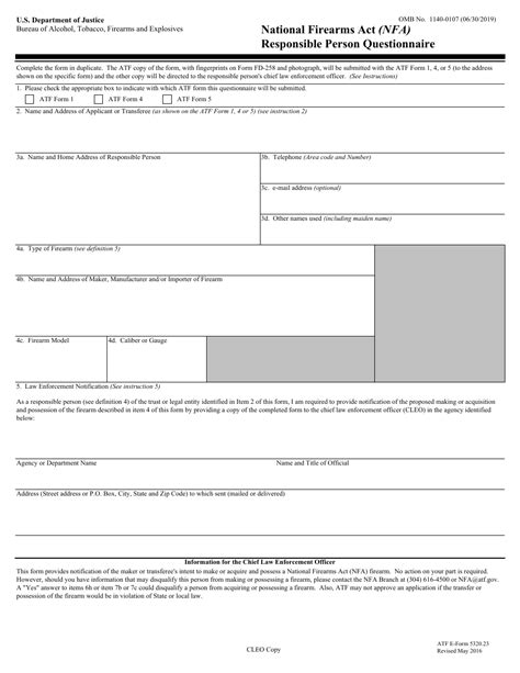 Web application to transport interstate or to temporarily export certain nfa firearms (atf form 5320.20) (324 kb) this form is. Web download national firearms act (nfa) responsible person questionnaire (atf form 5320.23) (438.23 kb) the atf copy of the.