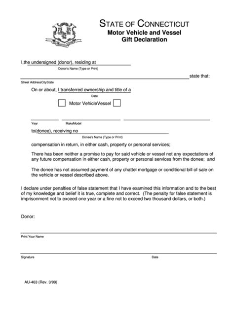Au-463 Form. Courtesy registration title request form: Receiving no compensation in return, whether in cash, property, personal services, or by the cancellation,.