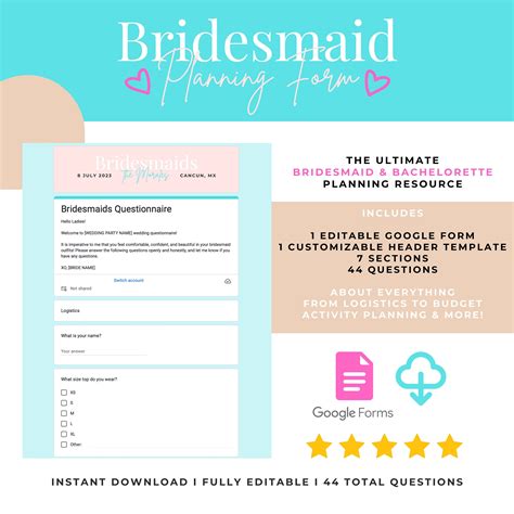 Bridesmaid Questionnaire Editable Google Form Etsy