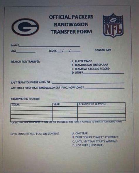 Bandwagon transfer form.. Reason for leaving, Packers fan, Sports memes