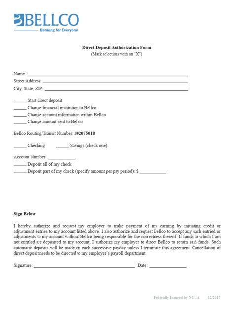 Bellco Direct Deposit Form. Web deposit to the account. If there are any discrepancies between the amounts shown on the itemized list of the deposit and the.