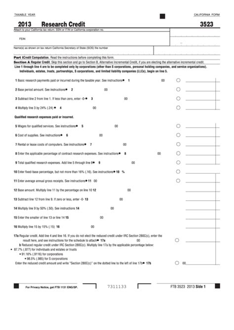 Line 18 through line 21 are to be completed only by corporations (other. Read the instructions before completing this form. 3523 part i credit computation. Web california form 2020 research credit attach to your california tax return. Skip this section if you completed section a, regular credit. Web use form ftb 3523, research credit, to compute and claim the research credit for increasing the research activities of a trade or business. Attach this form to form 100s, california s corporation franchise or income tax return; Line 18 through line 21 are to be completed only by corporations (other. Read the instructions before completing this form. Skip this section and go to. Attach to your california tax return.
