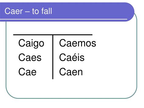 Web introduction caer is the spanish verb for to fall, to fall down . Web tu form of caer; It is an irregular verb, and one of the most popular 100 spanish.