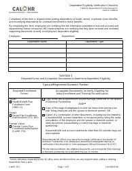 Web eligibility verification checklist (calhr form 781) to department’s personnel office for all dependent(s) enrolled in health, dental.