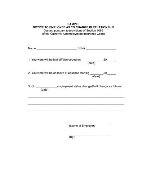 Web notice to employee as to change in relationship (issued pursuant to provisions of section 1089 of the. Web notice to employee as to change in relationship (issued pursuant to provisions of section 1089 of the.