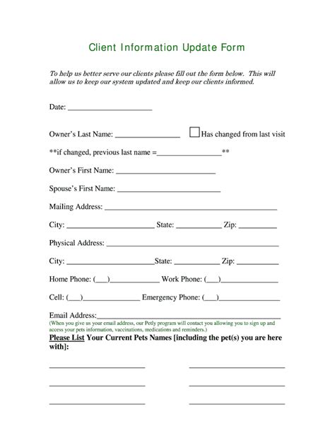 Client Information Update Form. Web when teams have clarity into the work getting done, there’s no telling how much more they can accomplish in the. Web a client information update form is a simple, secure way to collect contact and medical information from your clients and.