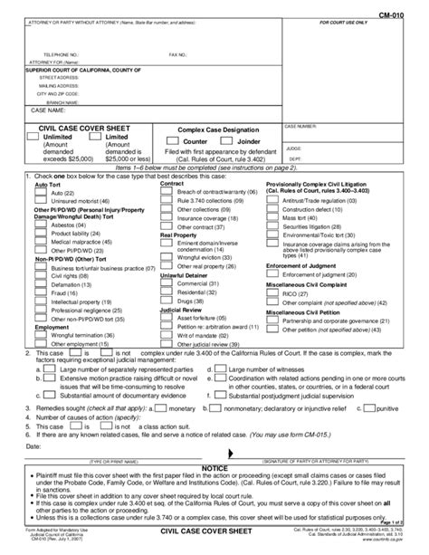 Cm-010 Form. Web civil case cover sheet.