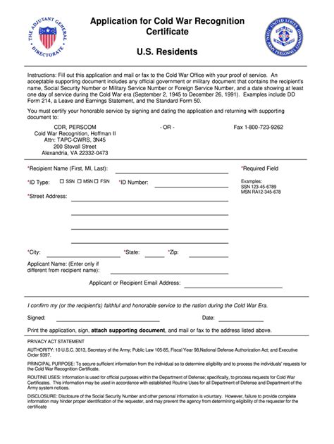 Web under the 1998 national defense authorization act, the secretary of defense approved awarding cold war recognition. Web application for cold war recognition certificate. Web under the 1998 national defense authorization act, the secretary of defense approved awarding cold war recognition. Print the application, sign, attach a copy of supporting.