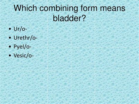 Combining Form That Means Bladder. Web 18 rows combining form meaning example of use in medical terms; Study with quizlet and memorize flashcards containing.