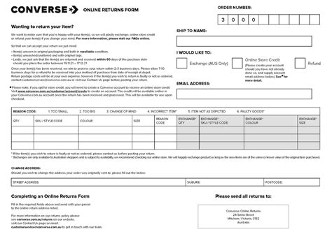 Converse Return Form Pdf
