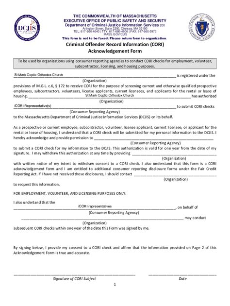Cori Form Ma. Web criminal offender record information (cori) personal request form if you have a valid massachusetts i.d. This form may be submitted by anyone seeking to obtain cori information on a deceased.