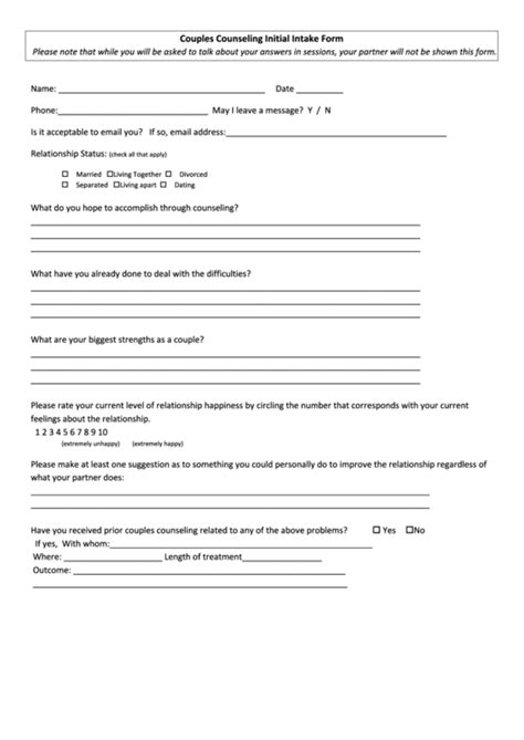 Web couples counseling initial intake form please note that while you will be asked to talk about your answers in session, your.