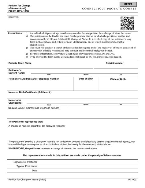 Our department does not currently require. Go to ctprobate.gov for a directory of courts. Web an individual 18 years of age or older may use this form to petition for a change of his or her name. The probate court located in the district where the applicant resides. 1/14 connecticut p robate courts the subscriber, being duly sworn, hereby swears, affirms or avers that: The petition must be filed in the court for the probate district in which the petitioner resides and accompanied by (a). Our department does not currently require. I have petitioned this court for a change of. Web name change request form for individuals and/or business entities that have legally changed their name and must update their change with our department.