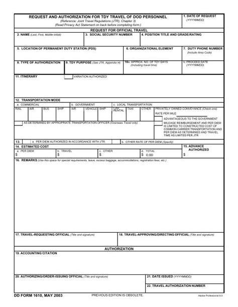 Request and authorization for tdy travel : Web dd form 1610 (back), may 2003 authority: Used for reviewing, approving, and accounting for. Web we would like to show you a description here but the site won’t allow us. Request and authorization for tdy travel : For distribution, refer to the dtmo website on “travel orders.”. Request for permanent duty or tcs travel : Web explanatory material for completing a tdy order on dd form 1610 follows.