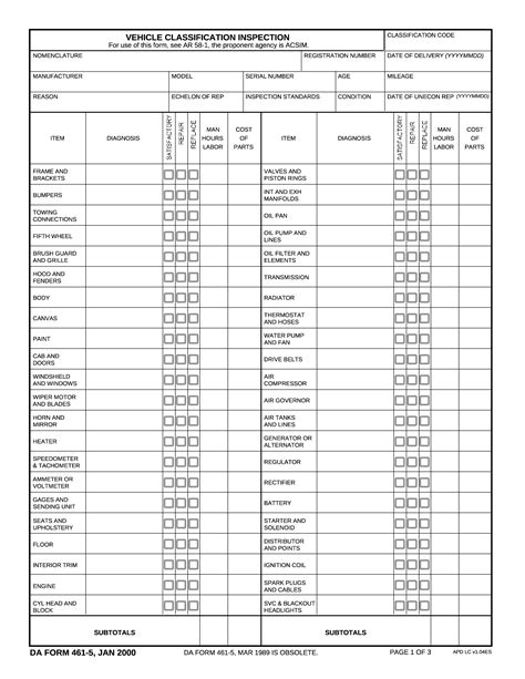 Da Form 461 5. Before the inspection of a.