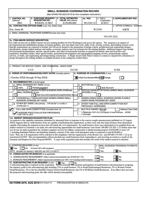 Dd 2579 Form. (a) use the dd form 2579 as prescribed. Dd form 2579,small business coordination record.