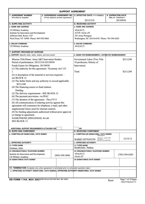 Previous edition may be used. General provisions (complete blank spaces and add additional general provisions as. Previous edition may be used. Web workload associated with drafting and staffing the dd form 1144. Web dd form 1144, nov 2001. Web two forms required for interservice transactions are the support agreement (dd form 1144) and a military interdepartmental purchase request (mipr) (dd form 448). Web we would like to show you a description here but the site won’t allow us. Web dd form 1144 support agreement tools. The dd form 1144 is to include the estimated dollar amounts of reimbursement for every fiscal.