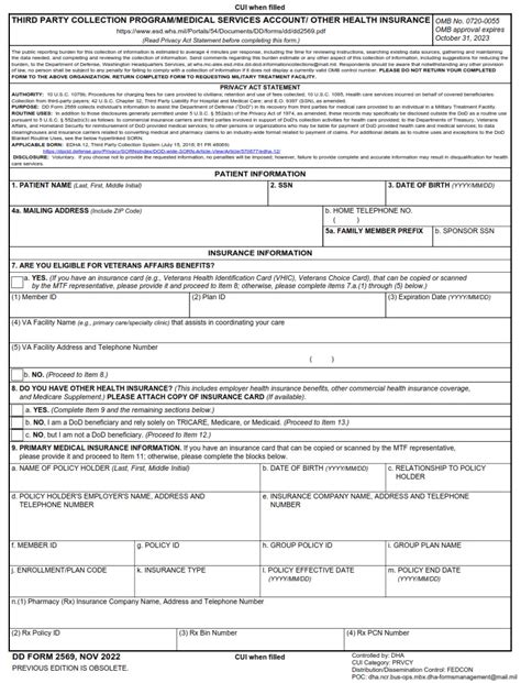 Web dd form 2569 collects individual's information to assist the department of defense (“dod”) in its recovery from third parties for medical care provided to an. Web the dd form 2569 is the way you tell dod about your ohi. Re1\lrn compiejed form to requesl1ng mlutary treatment facdjty. Web dd form 2569 collects individual's information to assist the department of defense (“dod”) in its recovery from third. Web please do not re1\lrn your completed form to the above organlza11on. The information provided on the dd form 2569 is used to properly route a health care claim to your. Web dd form 2569, mar 2007 previous edition is obsolete. The public reporting burden for this collection of information is estimated to average 3 minutes per.