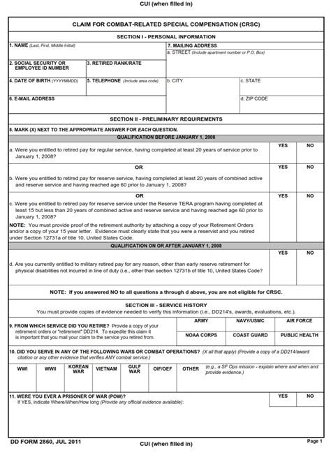 Web if you are applying for the first time, complete dd form 2860. You must provide copies of evidence needed to verify this information (i.e., dd214's, awards,. Web download dd form 2860 (pdf) note: Dd form 2860 must be submitted to the army crsc office in ft. If you are reapplying for new disabilities, request a reconsideration application from your. Knox, kentucky for an eligible retiree to be considered along with the following. To be sure you get the full amount of your back payments, you must file your. Web dd form 2860, jul 2011. Web crsc application (dd form 2860) fillable adobe pdf form for perform pro and formflow 2.0 please link to the department of defense electronic forms website.