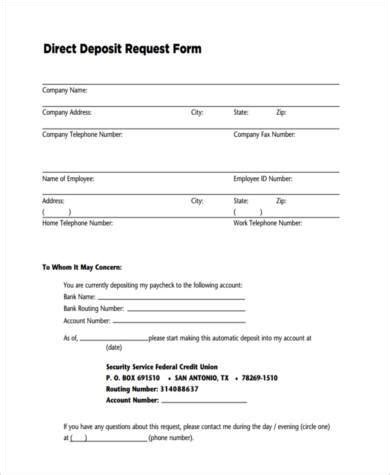 DIRECT DEPOSIT REQUEST FORM in Word and Pdf formats