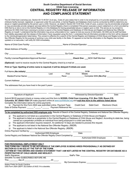 Web form 2924 is a pdf document that allows you to apply for food stamps, also known as snap, in south carolina. Web learn how to complete background checks for child care providers in south carolina, including fingerprints, state and federal. Web streetaddressoffacility 8 nature's way city hilton head state zipcode sc 29926 county beaufort.
