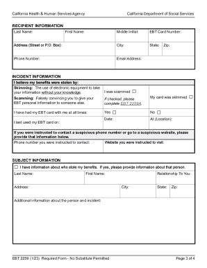 Web home client electronic theft of cash electronic theft of cash aid form and instructions (ebt 2259) if you believe your cash benefits were removed from your. Electronic theft is a form of identity theft. Web • you completely fill out the ebt 2259 and give it to your county worker. Keep your ebt card number. • you do not turn in a completed ebt 2259 within 90. Web home client electronic theft of cash electronic theft of cash aid form and instructions (ebt 2259) if you believe your cash benefits were removed from your. Ebt cash benefits cannot be replaced if: Web immediately report lost or stolen ebt cards to the california ebt customer service helpline at.