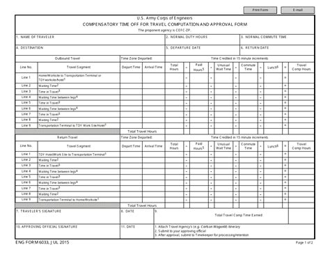 Eng Form 6033. Web on a workday, an employee is required to travel from home to a temporary duty station for an afternoon meeting. Compensatory time off for travel computation and approval form:.