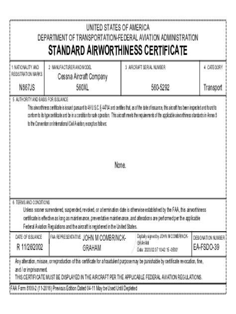Faa Form 8100 2. The primary audience for this notice is flight standards service (afs) airworthiness aviation safety inspectors. Web airworthiness certification of aircraft this order establishes policies and procedures for issuing airworthiness certificates, export certificates of airworthiness, and special flight authorizations for aircraft.