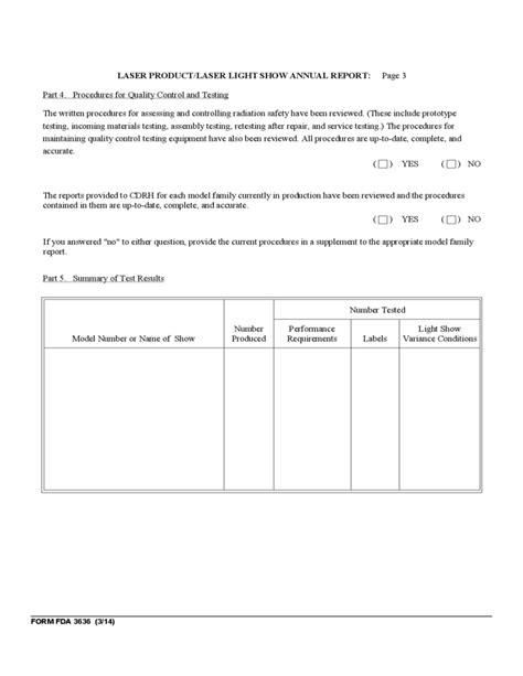 Form FDA 3636 Annual Reports on Radiation Safety Testing of Laser and