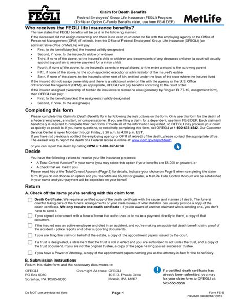 Fe-6 Form. Web claim for death benefits used to claim benefits for the death of anyone enrolled in the fegli program.