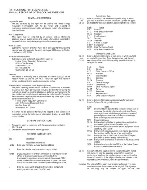 561, annual report of interlocking positions. (see section 46.4 of this chapter.) instructions for. Web § 131.31 ferc form no.
