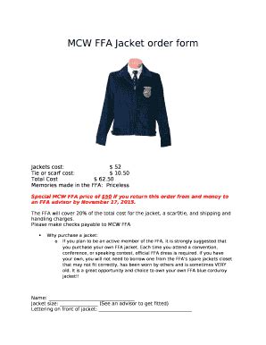 FFA Jacket Order Form