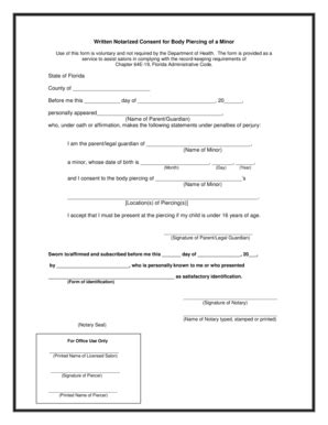 Florida Minor Consent Form For Piercing Printable Form, Templates and