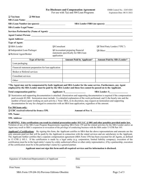 Additionally, a copy of the completed form signed by all parties. Web sba form 159 fee disclosure and compensation agreement. For use with 7(a) and 504 loan programs about this. Web all sba lenders must retain the original form 159 in the loan file. Additionally, a copy of the completed form signed by all parties.