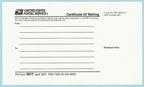 Form 3817 Usps. Check out our various publications and manuals. Use a certificate of mailing.